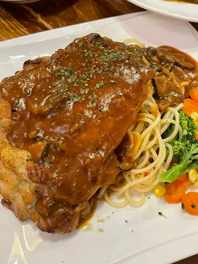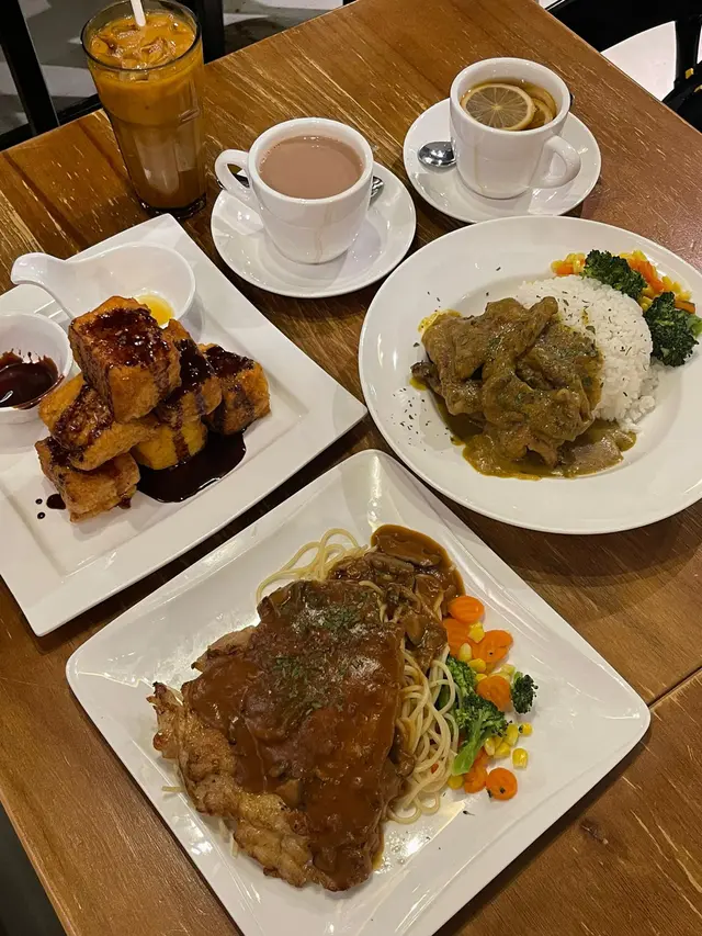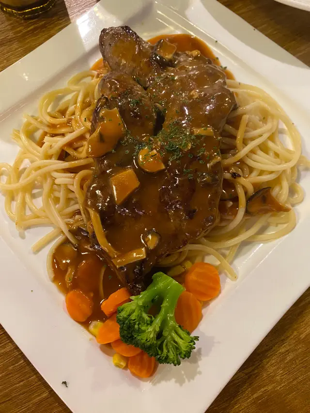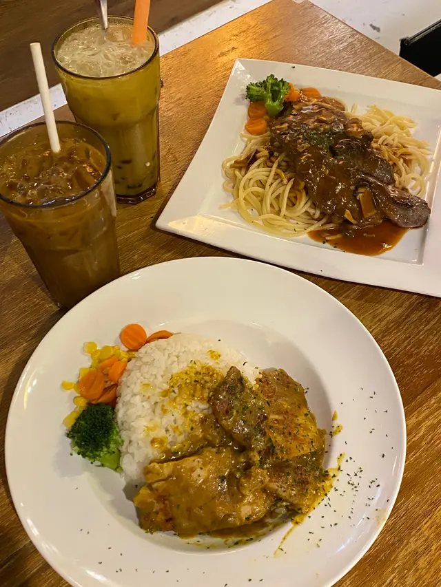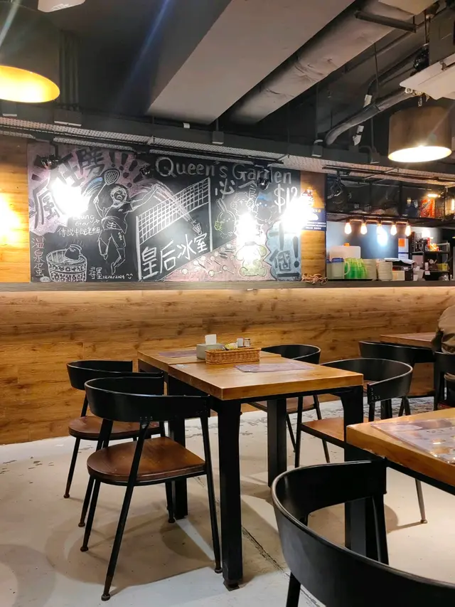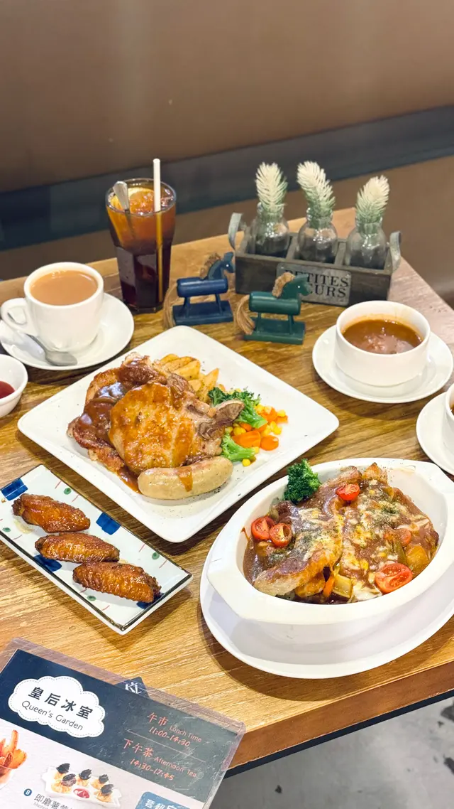 最近經過觀塘,見到皇后冰室嘅廣告牌,有多款套餐幾吸引就去試下。佢係工業大廈2F,下午茶時間會抵啲。店內環境優雅舒適,怖置帶摩登感覺。點餐用手機自助落單好方便,套餐可升級配小食。點咗美國費城烤西冷🥩配野菌燒汁意粉:西冷鬆軟得來有口感,牛肉味道濃郁,加埋燒汁很好味,而且分量都唔少。馬來咖哩香酥豬扒飯🍛:豬扒軟腍,咖哩很香又惹味,餸飯一流。餐飲凍咖啡☕️同紅豆冰就正常發揮。想下午茶坐得舒服,食物味道唔差可以試下。…查看更多