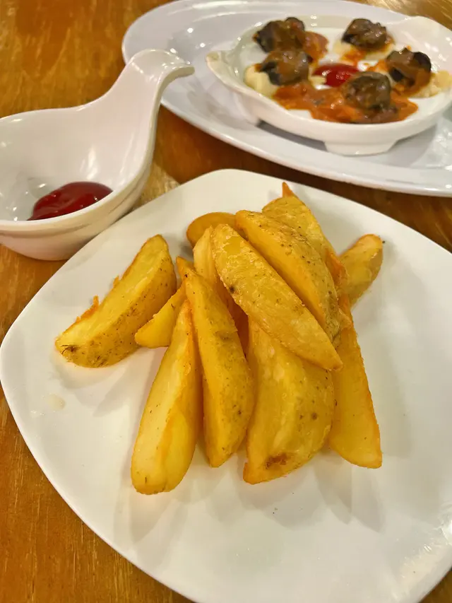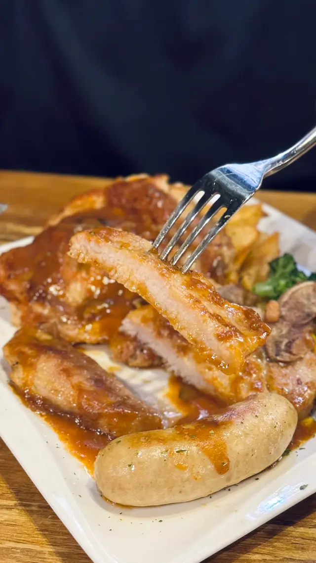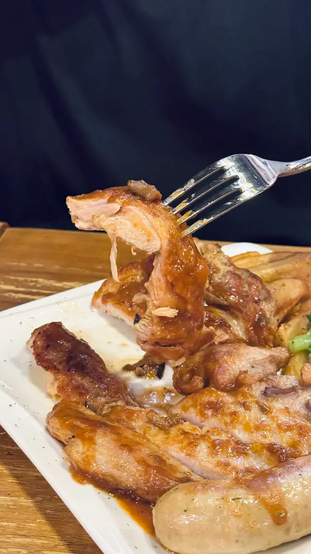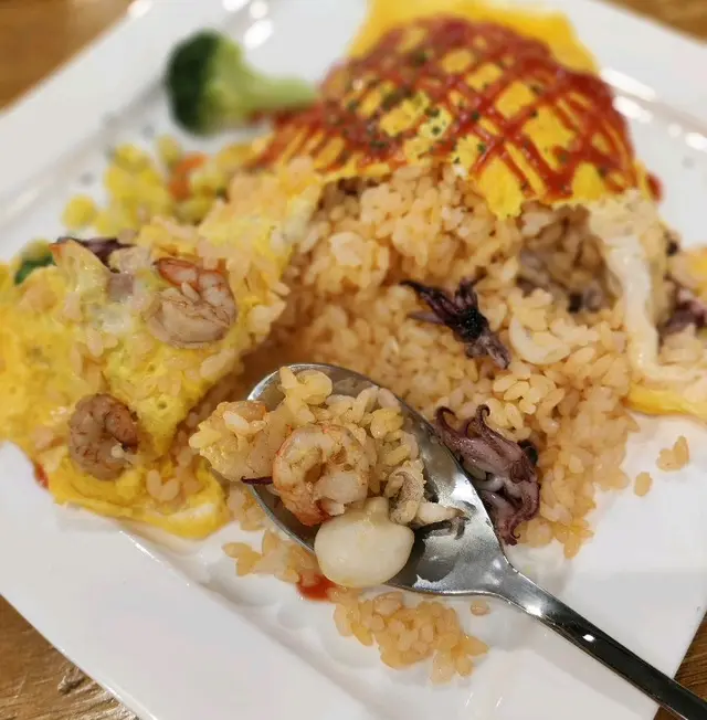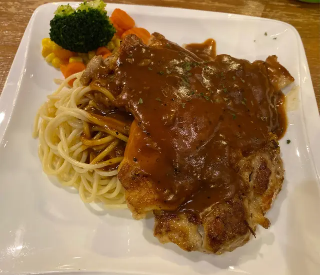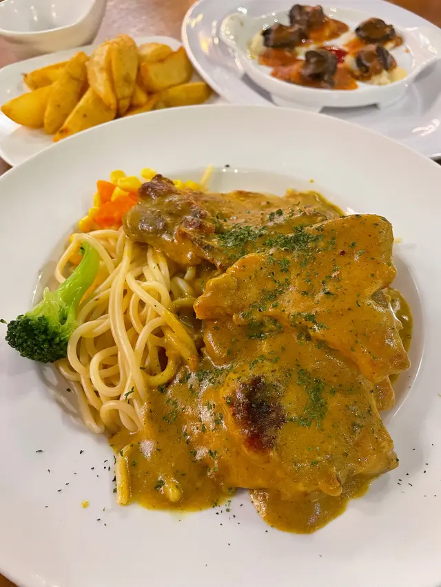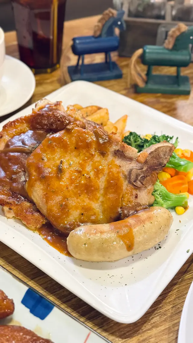 最近經過觀塘,見到皇后冰室嘅廣告牌,有多款套餐幾吸引就去試下。佢係工業大廈2F,下午茶時間會抵啲。店內環境優雅舒適,怖置帶摩登感覺。點餐用手機自助落單好方便,套餐可升級配小食。點咗美國費城烤西冷🥩配野菌燒汁意粉:西冷鬆軟得來有口感,牛肉味道濃郁,加埋燒汁很好味,而且分量都唔少。馬來咖哩香酥豬扒飯🍛:豬扒軟腍,咖哩很香又惹味,餸飯一流。餐飲凍咖啡☕️同紅豆冰就正常發揮。想下午茶坐得舒服,食物味道唔差可以試下。…查看更多