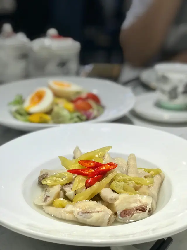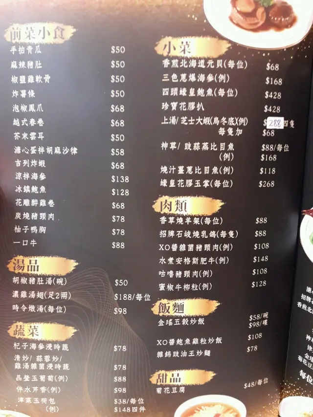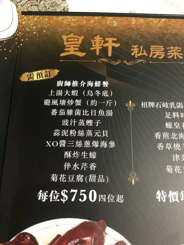 (皇軒私房菜)有別於一般私房菜,市場定位屬中高級別,提供有齊「粤菜四寶」的鮑、參、翅、肚,更有來自中山乳鴿。我們在品嚐享受珍饈百味之餘,也不忙感激大廚精湛廚藝。 炸bb鴿一隻$88,皮油脆香,熱度充足,肉質爽嫩,一流! 蠔皇花膠玉掌$268,花膠扒大大塊,炆得軟滑起哂膠,芡汁鮮,倍添滑溜口感,玉掌燜腍質地柔嫩。津菜蒸玉荷包$158,此乃手工菜精品,用大白菜包餡,餡料有類似潮式粉果的豬肉碎加上各種配菜(切粒),以界花菜心莖點睛。晶瑩玉葡萄$88,其名上品尊貴,呼其名未盡了解是何等食材,原來是圓形冬瓜粒,非常特別。雜錦豉油王炒麵$78,炒麵並不似茶餐廳的多油、濃味、多味精。此道菜的recipe趨向健康,且味道清爽,麵條有咬口炒得乾身,豉油份量不厚重而恰到好處,各種味道相當balanced!…查看更多
