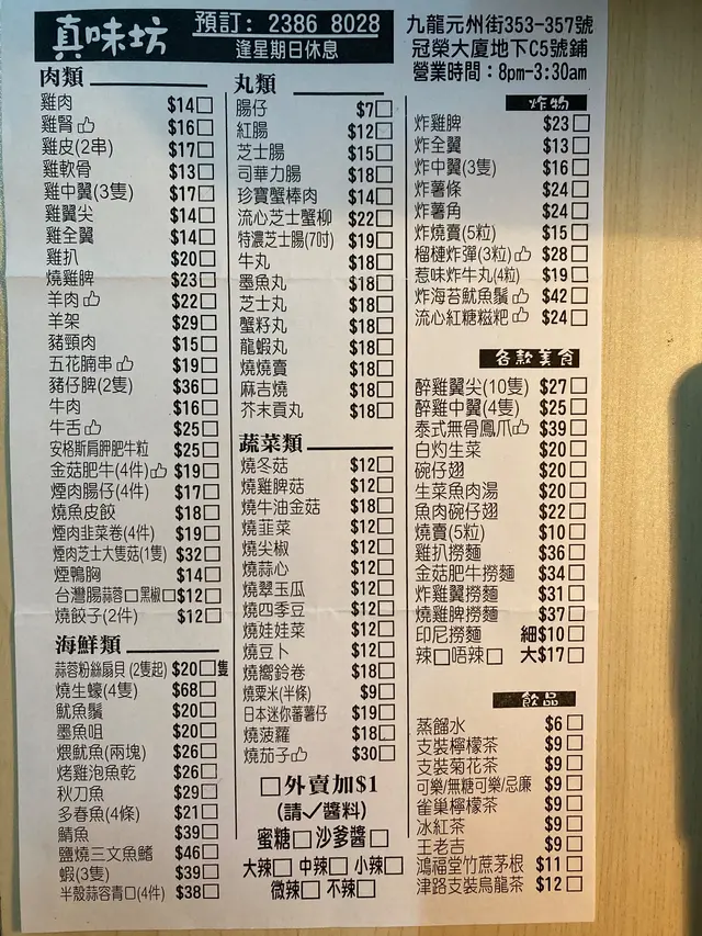 真味坊 (長沙灣) 網址: https://s.openrice.com/QrbS0qvu000 地址: 香港長沙灣元州街353-357號冠榮大廈地下C5號舖 電話: +852 23868028