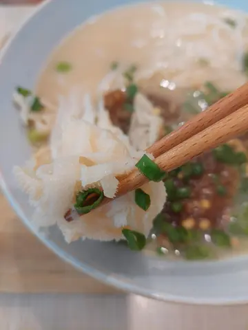 呢間車仔麵嘅位置雖然唔係好方便,今次咁啱經過見到有幾個人排隊就過咗嚟試吓,覺得唔錯😊😊雖然餐廳格局比較細嘅同埋迫少少,但係整體環境整潔😊😊今次試咗佢哋嘅胡椒湯配豬大腸雲吞米粉,湯底濃郁香濃,感覺上好似飲緊胡椒豬肚湯😋豬大腸雲吞米粉都幾好味,豬大腸煮得軟熟,雲吞彈牙多汁,米粉入味😊😊 佢嘅份量唔係特別大,食完之後大概7分飽,有需要嘅話可以揀加底另外佢仲有個招牌花膠車仔麵,朋友試咗話都OK,下次可以試吓