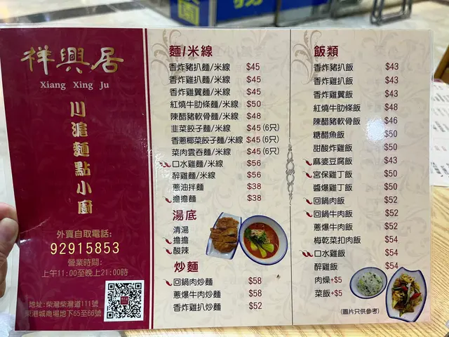 「祥興居」呢間川菜/京川滬小館就開喺柴灣道東港城地下,咁講呢間店雖然唔算大,但菜式幾有特色,用料實在,份量夠同屋企食差唔多。我哋今次食咗陳醋排骨麵、醉雞飯、雞扒擔擔麵同回鍋肉飯:整體味道仲算平衡,特別係陳醋排骨同醉雞,真係值得一試。環境方面座位唔多,但牆上有餐牌,等位時可以望吓先點,算係貼心安排。有間「房間」可以坐兩個人,但要留意空間較細。小貼士:等位時間可能會有啲耐(尤其喺 lunch time),而且店家只收現金或八達通,記得帶夠錢。…查看更多