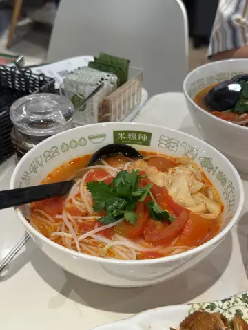 放工同男朋友想食得簡單啲, 喺佢公司附近食咗個麻辣蕃茄湯米線.麻辣蕃茄湯麻椒雞米線 (HK$68)湯底好濃蕃茄味, 勁多蕃茄粒粒.據講,餐廳係每日係用咗1,500個新鮮蕃茄熬製湯底嘅.麻辣味溫和, 唔會太辣.米線軟硬度適中, 份量都算多.麻椒雞味道係豉油雞加咗麻味.我覺得啲雞瘦咗少少, 多返啲肉會更加好.蕃茄梳打顏色係幾靚嘅.味道好Fresh, 一啲甜味都冇.真係好健康.不過呢隻味應該唔係個個都鍾意.肥牛芝士魚腐麻辣番茄米線 (HK$54)湯底同我嗰個米線係一樣嘅.但呢個米線就多咗幾款餸.佢嘅肥牛唔算多.芝士魚腐都係打邊爐嗰種.好似普通咗啲.整體嚟講, 麻辣蕃茄湯米線味道唔算驚艶.想簡單食個米線做lunch或dinner, 可以一試嘅.…查看更多