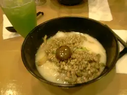 海苔雙雜菌泡飯 $31(散叫) / $36(套餐)飽肚之選,因為份量實在好多,泡飯多,草菇同磨菇亦多,所以,老婆食咗半碗就話飽晒,剩低嘅當然由小弟頂埋啦,好彩個撈麵唔算好大份,所以清埋半碗泡飯都絕無問題。講番個泡飯質素,咪睇佢湯色奶白,只喺不過不失,幸而未至於淡茂茂;草菇、磨菇別期望太多,罐頭貨色,勝在夠多