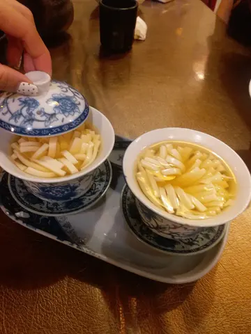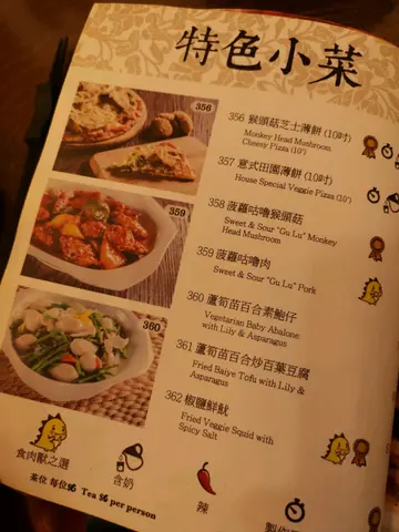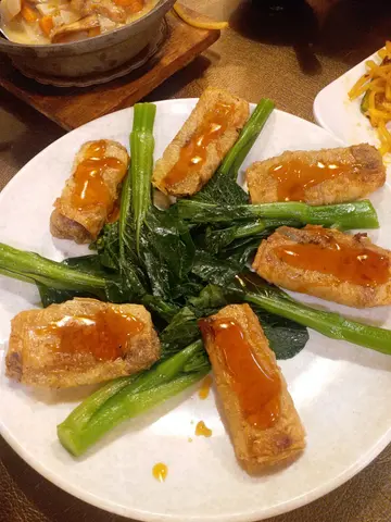 每樣平均70蚊左右,碟碟都裝到滿,大大碟,好抵食呀~平日夜晚冇人等位,可以比我地慢慢坐,慢慢傾♥️👍酸齋拼盤竟然係熱ge,第一次熱食,覺得幾得意。齋刺身味道真係好似三文魚😅 口感都試,有驚喜! 齋海蜇味道幾好,辣辣地,開胃。辣炒土豆絲係軟身果款,唔係爽ge。但味道幾好,微辣,唔係好食得辣ge都可以叫。菠蘿咕嚕肉味道就同普通ge咕嚕肉一樣啦,D肉係豆類製品造ge。炸腐皮卷略嫌太油,連條菜都好油。呢個甜品夠曬特色! 菊花豆腐花! 薑味夠,食完個人暖曬~…查看更多