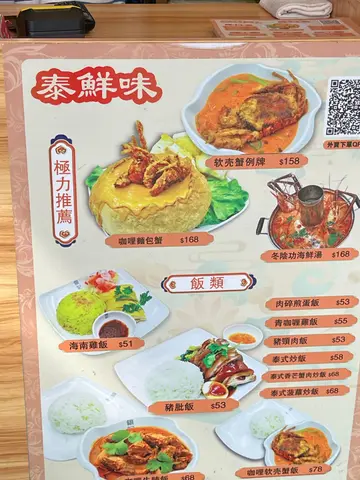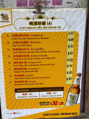 大蝦炒金邊粉菠蘿炒飯泰式炒椰菜苗海南雞飯燒豬頸肉咖喱海鮮農夫包越南撈檬冬蔭功湯明爐魚