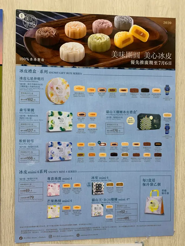 一年容易又中秋,今年特別有月餅運,已經試吃過不下六間月餅了 ,但那些都是傳統的雙黃白蓮蓉、黃蓮蓉和近年新興的奶黃,至於冰皮月餅呢?很感謝美心送來今年新推出的幻彩粒粒冰,現在就跟大家分享一下吧!張智霖的電視廣告拍得他很型仔,現在又剛好有他主演的電視劇,所以我想大家的注意力都集中在他身上吧,只看到他拿著一個小小的冰皮月餅,但就沒留意到底是什麼。盒子打開一共16個,每層8個的mini冰皮月餅,四款不同顏色的包裝,有綠、粉紅、粉藍和橙色,好繽紛的感覺~看著已經覺得很開心。不要以為四種顏色包裝只有四款口味,其實16個mini冰皮月餅也是不同口味的!16款口味包括:皇牌芒果、芒果脆脆、楊枝甘露、藍莓二重奏、栗子、魔鬼脆脆、奶黃、天使脆脆、藍莓芝士、粉紅番石榴杏脯、綠豆蛋黃粒粒、黑森林、芒果栗子、士多啤梨、熱情果柚子和宇治金時。很喜歡這個mini冰皮月餅的設計,就算一人吃掉一整個都不覺太漏。是晚跟幾個朋友分享,一晚就試了差不多十款口味呢!為了方便辨識每款月餅的口味,除了在圍著鐵盒的膠套外,每個月餅都會在包裝上寫著口味,有繁體、簡體、也有英文,指示清晰。可能有一段時間沒吃冰皮月餅,沒想到口味有那麼多變化,例如粉紅番石榴杏脯、熱情果柚子等等。眾多口味當中,我比較喜歡的有藍莓芝士、奶黃和宇治金時;可能我本來就喜歡芝士吧,另外藍莓醬又不太甜,和芝士很搭;酥皮奶黃月餅就吃得多,冰皮的好像沒吃過,蛋黃的味道很濃,味道不錯;宇治金時的抹茶和紅豆一向都是絕佳配搭,而且喜歡它不會過甜。可能因為朋友家的雪櫃不夠凍,所以某幾款以水果為主的冰皮有點軟腍,反而奶黃、綠豆那些仍可保持煙韌,所以記得吃前保持冰凍,這樣口感就更加好呢。因為我們一大班人分享冰皮月餅,所以並沒有為每個都拍下橫切面,有興趣了解多一點的朋友可以到美心的官網看看一系列冰皮月餅哦!
