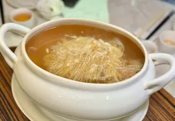 早年好友曾在這裏攪過飯局,水準非常出色,而且價錢合理,一直令我和太太念念不忘;早前得知好友今年再攪,當然立即報名參加。今次同樣選在有獨立衛生間的「英皇」VIP房間內,朋友更特別帶來陳年花雕酒及甜酒,感激不盡。首先上場的五小碟前菜,分別係肉質嫩滑帶濃濃酒香的「醉鴿」、鬆軟又有彈性的「烤麩」 、清新不膩的「香干馬蘭頭」、呈溏心狀的「水晶燻蛋」及 爽脆鮮味的「蔥油海蜇蘿蔔絲」,每一樣也各有其特色。鮮嫩爽彈的河蝦仁跟著上場,配上翠綠圓潤的甜豆,出色又好味,不消一會已吃個碟底朝天!火瞳雞燉翅~超大煲的雞燉翅,立時吸引在場的每一位,一梳梳的魚翅、頂級的金華火腿、雞肉,慢火熬煮多個小時而成,湯底質感濃稠,微微黏口,味道甘香甜美,香濃且潤喉,每一口也吃到爽滑彈牙的魚翅,超級滿足;火瞳皮充滿膠質,軟熟有彈性,令人忍不住吃完想再吃,超級美味。😋雞米鍋巴卷~大廚先把鍋巴炸脆,在未成形前捲成手卷狀,吃時把切好的食材放入鍋巴之中,既好味又酥脆,賣相及味道也非常吸引;期間食友不停追問攪手,雞米中有什麼材料,據攪手說會根據時令及大廚喜好,而作出調整,未必每次也一樣,就今次眼看有雞肉、芹菜、青瓜、松子、紅蘿蔔、蔥花等。勝瓜黃雀~單看名稱,怎會想到這是一味素菜,原來是以腐皮包裹着木耳、牛蒡、竹荀及甘荀等食材,腐皮留尾,形成像雀鳥的外表,配上勝瓜、紅蘿蔔、草菇及雲耳,味道清甜又滋味。油炆茭白豆苗~茭白水分多,纖維含量豐富,但熱量卻相對 低,對想減肥的人,是很不錯的食材;茭白外形很像竹筍,吃起來鮮嫩爽口;豆胚是豌豆種出來最鮮嫩的部份,食店更在豆胚中挑選最靚嘅選擇,真係豆胚中的冠軍,怎會不好吃。乳腐方肉~乳腐方肉,外形有點似東坡肉,口感軟腍滑溜,因加入香濃的乳腐醬汁,味道感覺比東坡肉更佳;墊底的白菜仔,在吸收了醬汁後,滋味更好!😋椒鹽八寶鴨~傳統八寶鴨使用蒸熟然後澆芡汁的做法,雖然好味但過於油膩,沒有一定人數,根本難以消化;但椒鹽八寶鴨,使用椒鹽酥炸方式烹調,不但吃起來比較香脆,鴨肉皮酥肉嫩,釀餡濃惹香郁,真係食多幾件也不覺膩,真覺比原版提升了不少檔次。之後還有素菜包、蔥油拌麵、八寶飯 及 合桃露,全部也有一定水準,尤其素菜包外皮做得非常鬆軟,好味又飽肚,值得一試!#老上海飯店地址: 灣仔軒尼詩道288號英皇集團中心1樓101-104號舖電話: 28279339…查看更多