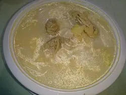 湯底夠熱,但略嫌油多,湯料有6件雲吞,津白及半隻雞。雲吞以豬肉作餡料,很入味!很足料,不用叫粉麵飯也能飽肚!上海生煎包