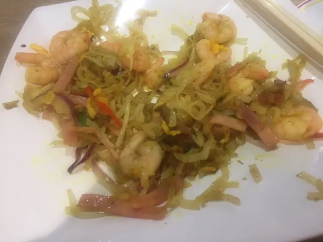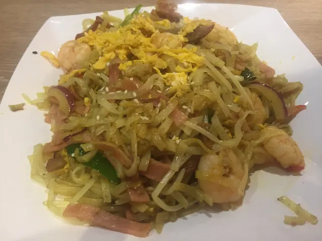 精選午餐:星洲炒貴刁又系大量生產,上碟冇獲氣又不夠熱。食材是足夠:蝦,义燒,火腿丝,洋葱,青红椒丝,牙菜。用的是幼身河粉。可惜蝦冇味,用咖哩粉炒(不是咖哩汁),结果是無甚味道,無法KO它!其實好想试多次才寫食評,这样可能會公度点,但真的提不起勁再試!查看更多