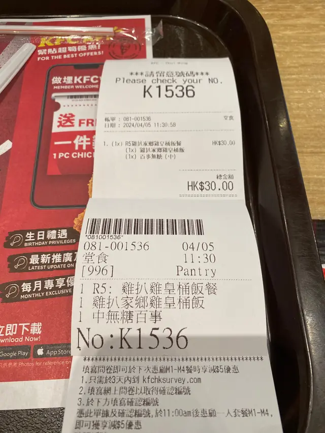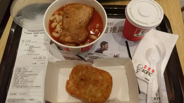 今晚路經調景嶺,就去彩明商場嘅kfc食新出嘅脆雞粒咖哩飯,點知食到成肚氣,貼錢買難受。晚市高峰期,收銀係完全無職員嘅,只可以去自助機買野食,我係㩒左堂食。等左15 分鐘左右,終於攞得,但佢幫我裝左外賣,而裝外賣嘅餐盤係勁污糟,仲有上一手食剩嘅炸雞碎。目測出餐處清一色都係外賣,咁我諗可能晚市多人,佢地費事煩就全部用外賣裝比個客,我體諒佢地,諗住就算數。拎左個外賣返埋位準備開始食嘅時候,發現佢比漏餐具。於是我就行返去出餐處請職員比個匙羹我。點知,兩個女職員先後只是面無表情不斷重複同一句話「外賣無餐具?」我答「是的,你地無比餐具我,麻煩比個匙羹我。」然後,旁邊一個藍色制服疑似經理嘅男人就勁無禮貌咁插嘴「外賣無餐具呀你明唔明呀!」我這才意會到原來他們的意思是外賣不提供餐具。我本來是選擇堂食的,無端端被變成外賣已經好委屈,仲要比佢地當值經理咁惡劣對待,而且kfc從來沒提過外賣不提供餐具,我一直以來都keep住有幫襯kfc,每次外賣佢地都會自動入埋餐具比我,通常係我主動要求不用給餐具我添!咩時候轉左規矩?定話係呢間分店自把自為改左個規距?當下非常震驚就咦了一聲,點知個男經理態度極之惡劣,非常不友善,說「你咦乜嘢呀!外賣無餐具呀你明唔明呀!仲有冇野幫到你!」嘩,當值經理帶頭兇個無辜嘅客,我簡直難以置信,嬲到即刻掉頭走。雖然係快餐店,但服務態度都不應該差成咁!而個飯同啲脆雞全部都係勁淋,唔好食,脆雞唔脆,飯又唔香唔乾爽。唔會再去呢間分店。…查看更多