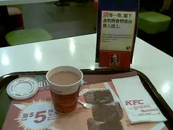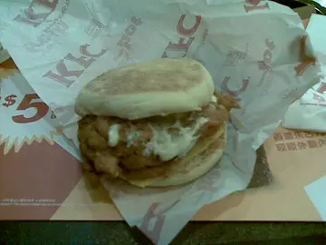某日經過這裡,赫然發現會開kfc,昨天早上再經過這裡,發現原來已經開始營業了,太約十點多走上去食早餐,試試新環境.上到去發覺這間跟其他分店不同,上咗樓梯之後,就要好似美心或大家樂咁睇水牌買飛先,然後行入少少等嘢食,再行入少少坐低,不過坐位就唔係太多,全部都是圓櫈,其實唔係坐得太舒服:(,不過勝在新開張無人知,只有小貓三四隻在上面,除咗唔知點解有幾下裝修聲外,都算靜..叫咗個芝士雞扒飽,唔知係咪無人食的關係,即叫即做,等咗十分鐘先嚟,件雞就非常夠熱,整體上都算幾可口.…查看更多