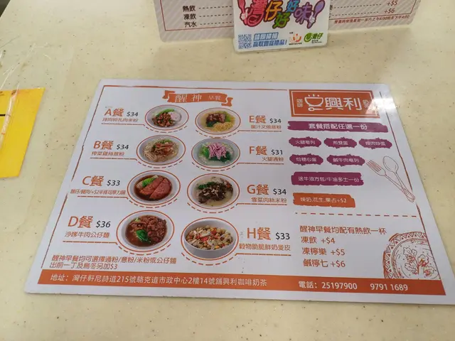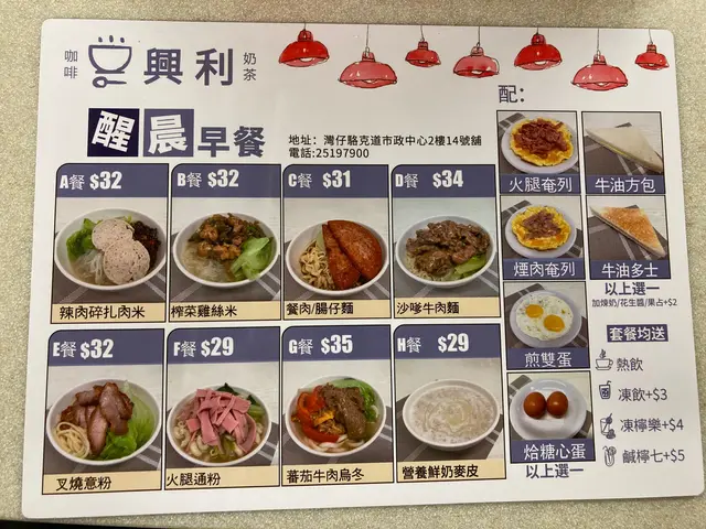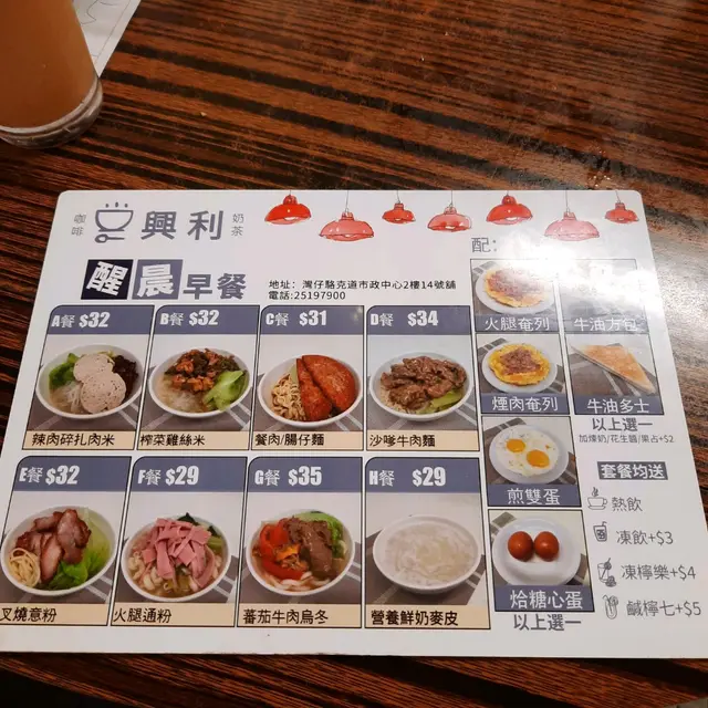 興利咖啡奶茶 (灣仔) 網址: https://s.openrice.com/QrbS0Tre000 地址: 香港灣仔軒尼詩道225號駱克道市政大廈2樓熟食中心