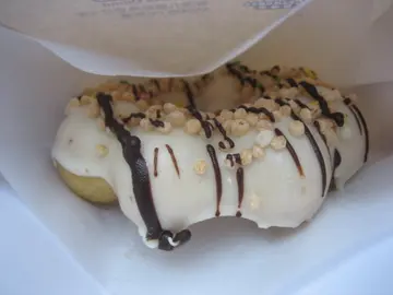Flavor: Chocolate + wallnutsI wasn't planning to eat here, but I was walking around the area and spotted the tiny shop at the corner. I recalled reading about this shop in a magazine and decided to give it a try. The shop is a very tiny place, but very attention-catching with colorful displays, so it's not hard to find at the corner of the street.It really looks like a donut at first: the round shape, the frosting, etc., but after the first bite, it's more chewy than a donut and definitely less sweet than a donut. It's all good changes.It's certainly worth a try given the fresh taste.…查看更多