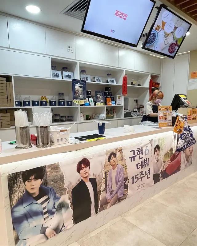 話說 Super Junior 出道15周年,但係因為忙內圭賢遲半年先入隊,所以佢依家先係15周年,追本命當然要追哂成團,所以去支持應援!感謝fans(嗚謝清單喺下面)為圭賢搞應援活動,個透明杯套好靚,個Griptok都好得意,現場個裝飾一睇就知係Phantom,當然唔少得佢啲大頭照。天氣再熱都阻擋唔到去支持嘅心,但我必須要飲一杯凍嘢!花斑茶社喺商場入面,有少少難搵。茶店所有茶葉都係由台中茶園直送,有紅茶、綠茶、烏龍同四季春。鳳梨冰茶 $26店員貼心問要紅茶定綠茶,我就揀咗紅茶兼走甜。始終有鳳梨所以都有微微微微嘅甜味,仲有少少鳳梨肉,又飲到茶味,都幾balance。現場見到好多人買黑糖珍奶,記低下次試先。特別嗚謝:@im.kyuhyun.elf @kris_in_blue @kyunite.hk @sopi_kyu.elf @sj.love.1106.s @kyu_cheeringkit 查看更多