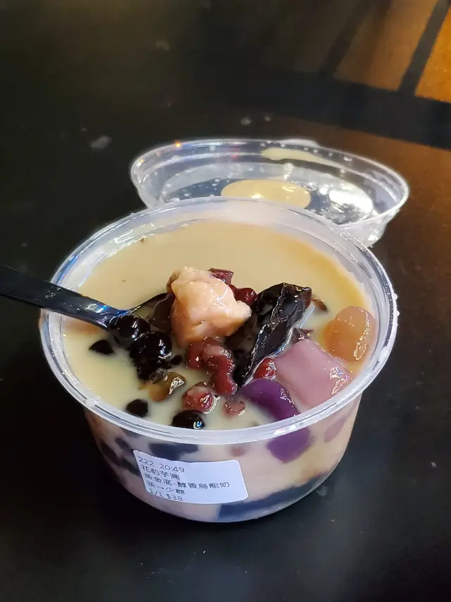 花斑茶舍係一間位於北角台式嘅飲品店,炎炎夏日當然適合買一杯手搖的消署下啦,黑糖厚奶珍珠鮮奶係手搖店嘅主打,不過我覺得有少少甜咗啲~😆😆今次見到除咗手搖之外仲有買糖水,仲有好多人order,你是膽粗粗就試吓啦!估唔到真係好味, 糖水入面有芋圓、紅豆、珍珠,仲有好多涼粉,茶底可以簡薰花茶或黃金茶,黃金茶會比較偏向似奶茶🥤,所以我就揀咗圖中嘅薰花茶~ 份量中等、價錢相宜,可以揀凍同熱,值得一試!!🍴😋查看更多