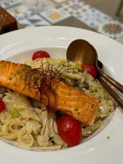 茶木嘅「鮭魚奶油野菌手作麵」真係邪惡到冇朋友!😈一上枱已經聞到超濃郁嘅奶油香,真係忍唔住要即刻開動!佢哋嘅手作麵真係冇得輸,口感有夠Q彈,掛汁力一流,每一條都沾滿咗creamy嘅醬汁💦。重點係啲鮭魚!煎到外皮微微金黃,裡面保持到嫩滑嘅口感,一啲都唔柴。搭配埋香噴噴嘅野菌,成個組合真係完美!食到最後一啖都唔會覺得膩,反而想再encore。如果你係奶油控同埋鍾意食手工麵,呢個真係必點!👍珍珠奶茶自己加珍珠都好有趣…查看更多