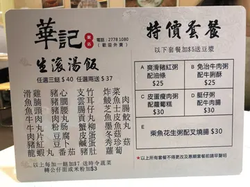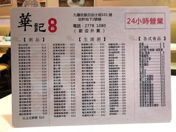 華記粥店 (佐敦) 網址: https://s.openrice.com/QrbS0nTS700 地址: 香港佐敦白加士街101號珀軒地下2號舖 電話: +852 27781080