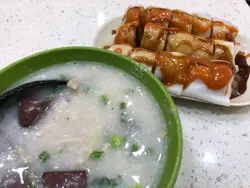 天寒地凍,最好就係食碗粥暖吓胃。經過這小店,門面都幾光鮮。可惜........好耐未食過咁難食嘅一間專門買粥嘅小店。點咗豬紅廋肉粥同炸両。豬紅同廋肉都係冇味嘅。粥底好味精,炸両嘅腸粉同油炸鬼都係冰凍的(我唔奢求要外軟內脆,但腸粉皮厚而無味,油炸鬼又軟淋淋)。D甜醬辣醬又唔好食(甜醬D顔色唔知點解係淡啡色的,好似溝淡咗嘅蠔油顏色)。一個字:差後記:用餐期間聽到鄰桌嘅操普通話遊客説:這是到香港以後最好味的一餐。我心想:媽呀!他們之前究竟食過D乜?