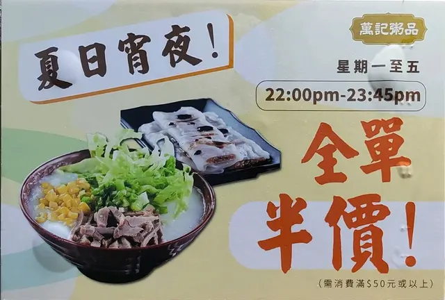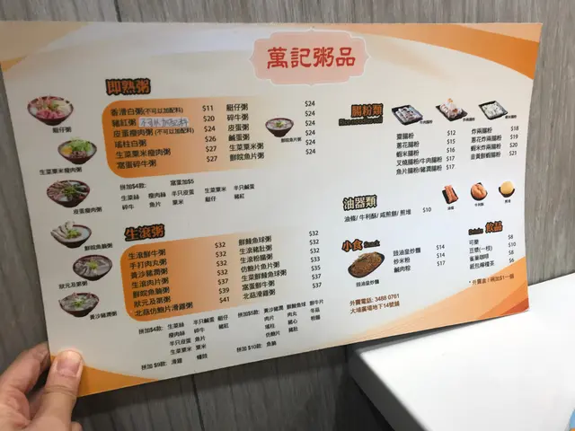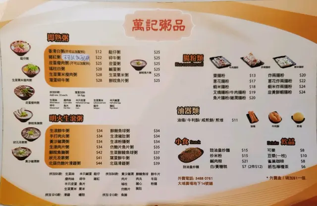 萬記粥品 (大埔) 網址: https://s.openrice.com/QrbS0asOB00 地址: 香港大埔安泰路1號大埔廣場地下4號舖 電話: +852 34880761