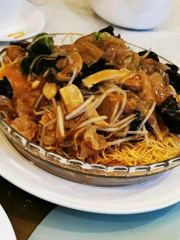 元朗出名美食多,估唔到素食都好好食!三個人,叫咗個四人餐,四餸一湯。首先嚟嘅係呢一個仿翅,估唔到同平時食到嘅差唔多,有驚喜。