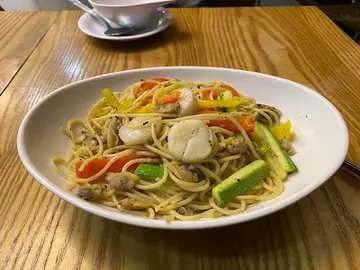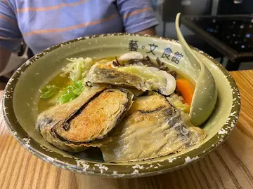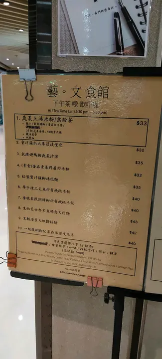 這一天,因為想去八卦一下在將軍澳新開業的日式超市。於是,一放工就同太太在沙田會合,直指將軍澳市中心。在車上,我們開始搜尋將軍澳站周邊有沒有提供素食的好地方。而在搜尋網站中,我看見了《藝 ‧ 文食館》這一個名字。我們在車上看了小店的餐牌,確定有素食之後,一下車就立即來找了。找到後,更發現一個好消息,原來這《藝 ‧ 文食館》,是由久違了的《菓一道》經營的。我們立即確定,這是一間健康餐廳。這《藝 ‧ 文食館》不算是好找的一間餐廳。像我們這些非將軍澳居民,甚麼天晉滙,甚麼 Pop Walk,真係聽都未聽過。若不是有電子地圖,同帶口問一問管理員,我諗我有排搵呢一間小小的餐廳。更令人感難找的,就是這餐廳位於整個商場中最寧靜的一角。因為餐廳要照顧素食人士,所以餐湯是素的,而該日的湯是一個蕃茄燕麥湯。我可以說,這是一個很濃的蕃茄湯,酸味中又帶點甜。湯內有可愛兼健康的燕麥粒同蕃茄粒,味道就是純正的蕃茄味加糖,味道不錯。太太說,很久沒有食過素食既日式拉麵了,所以她一看就看中這木耳金菇鴛鴦素鴨蔬菜湯拉麵。何謂鴛鴦素鴨? 就是一半是炸,一半既蒸的素鴨件。純蔬菜湯底清淡,但絕不是沒有味道的,煎的素鴨很香口,蒸的味道也不差,只是拉麵麵條是一般質素而已。帶子蒜香蜆仔肉炒意大利粉。淡淡地帶出了應有的咸香味,入口少油,連橄欖油都少。意粉保持有少少的爽脆感。食慣香口味濃的朋友,或許會對這兒的食物出品有少許不滿,因為這兒的出品以健康為主,味道絕對是偏淡而且少油的。喜歡清淡口味的,這兒的食品一定會令你滿意。咖啡,其實沒什麼好評。因為一飲就飲得出這是即溶咖啡沖出來的。這一餐,可以說是久違了的《菓一道》的健康清淡好味道。不一定要茹素,而又想吃得健康一點的話,《藝 ‧ 文食館》是一個好選擇。…查看更多