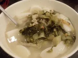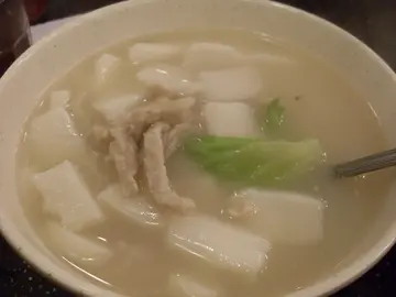 想食刀削麵同埋蘭州拉麵? 要十一點後才有供應。 早餐款式比坊間特別, 扒類早餐無供應。雪菜肉絲湯年糕青菜肉絲湯年糕兩種湯年糕的湯底睇落頗濃, 而飲落幾清。 雪菜那碗就是要多得雪菜能帶出些鹹菜鮮味。 全碗有外邊的大湯碗那麽大, 似是午餐份量。上海年糕碎上, 入口充滿米香和煙軔。下回要試吓刀削麵同埋蘭州拉麵