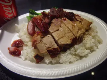 《蘭芳園》三個字,大家都只會想起其風靡全球的絲襪奶茶。每天,基本上每時每刻都有人在他們的鐵皮檔外排隊等奶茶,茶餐廳內亦坐滿專程黎食個炒公仔麵的人...這一個是《蘭芳園》常見的景象。不過,多出入擺花街的朋友也許會留意都,《蘭芳園》多了一間燒臘店,而我抬頭看一看,這.......《蘭芳園》開始撈過界了....燒臘店算了,因為茶餐廳加設燒臘部是常見的事。當我發現旁邊的酒吧中午開門時我也覺得奇怪,為何會有酒吧會開在這一個街市的位置而店內又沒有 bartender 既呢? 不過,我的目標是《蘭芳園》燒臘店而不是這酒吧,那我當然不理啦......哦,燒臘店坐滿了,店員指示我要坐旁邊的《蘭芳園》酒吧,原來《蘭芳園》已經發展到有埋間酒吧仔在旁,感覺上,他們的而且確是撈過界。不過,這一個小小的酒吧,也算是五臟俱全既。沒有飲酒,因中午不賣酒,但我的燒味套餐並不包奶茶,只包一罐汽水,感覺有點兒那個.....不過,無他的,他們最賺錢的就是奶茶,當然賺到盡地分開賣啦,而我近日發現自己正步向赤貧一族,決定不加錢了,飲汽水就飲汽水啦。說燒味,我選了叉燒加燒肉飯,沒有餐,感覺就是一般燒臘店仔斬料食午飯仔的一樣,而且,他們用上了這一種發泡膠碟,感覺很不環保。這日的叉燒雖夠甜口,但入口我覺得有點粗,也有少少鞋口;燒肉,皮夠脆但不是完美的脆,肉有少少過咸,另肉厚雖令人滿足,但太厚又覺得這燒肉用來做男人的浪漫會更加好。整個飯的感覺只是一般。吃飽後,看見《蘭芳緣》,查一查之後就是該酒吧的正式名字。我食叉燒飯食到要入酒吧,證明了《蘭芳緣》同《蘭芳園》是有關的,而《蘭芳緣》同《蘭芳園燒臘》也就是《蘭芳園》在同街的二號鋪。說我所食的叉燒飯有什麼好說呢??? 我只可以再說,整個飯的感覺只是一般。不過,若是酒吧提供玉冰燒給我們伴叉燒飯,可會是人生的一大樂事啊.....食叉燒飯配酒,梗係玉冰燒啦!!!! 歌仔都有得唱架!!…查看更多