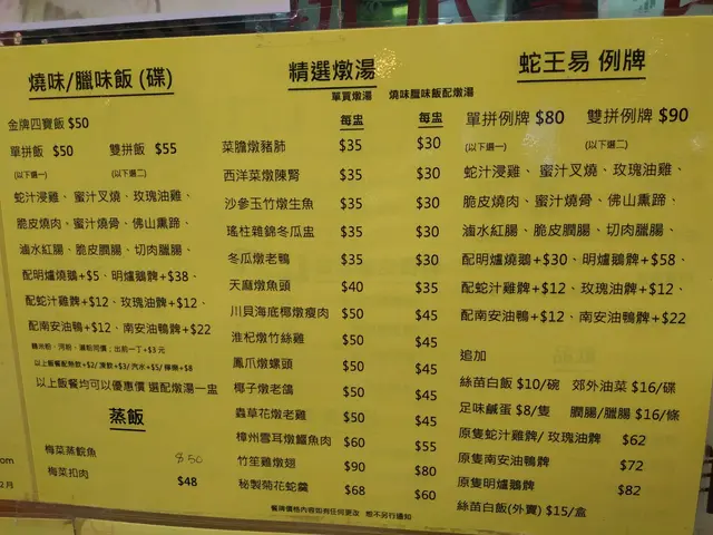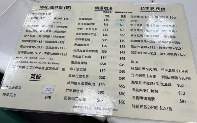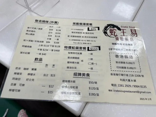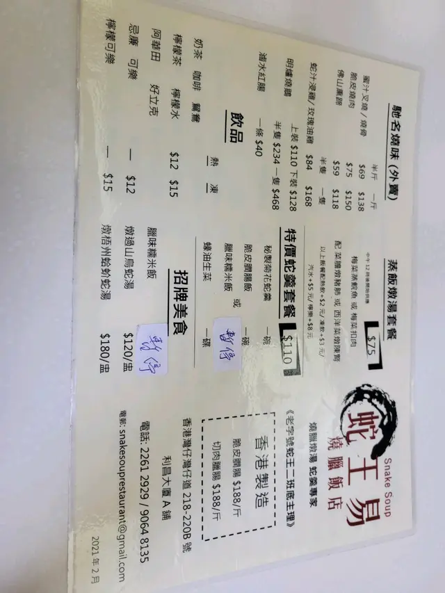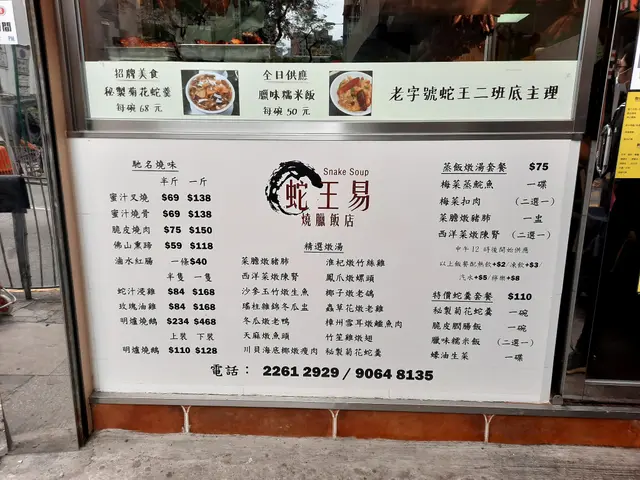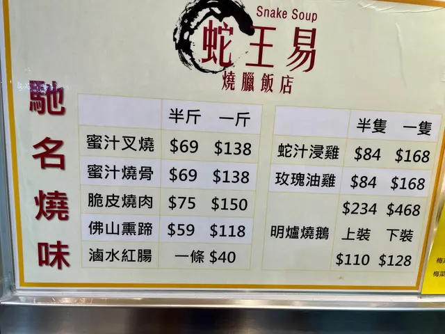仲係叫蛇王易嘅時候,起碼幫襯過十次八次,除咗蛇羹,其他燉湯大部分都飲過,全部讚,燒味叉燒 雞,樣樣好味。啱啱再食,差到無人信,叉雞飯 嘅叉燒同雞都係霉嘅,燉湯飲落口,同招牌加咗龍記兩個字之前完全兩回事,飲咗菜膽燉豬肺湯,以前飲 豬肺係白色 係軟腍嘅,頭先飲 豬肺係淺灰色 係韌嘅,啖湯完全唔係嗰種清甜味,我唔係食家,唔識用咁多形容詞,總之 全部嘢都係差,失望。