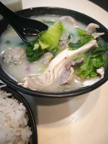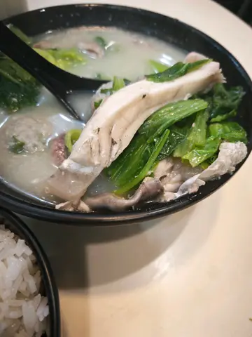 今日胃口麻麻, 想食d有水份的食物😅, 忽然想起依度, 都好似好耐無來食過, 想食西洋菜, 不過無, 揀左芥菜鯪魚🐟肉粉腸同加3元要🐟魚腩湯飯, 豆漿因為口渴, 所以都想飲d水😚等左一陣豆漿先到, 味道唔錯, 係甜左dd, 之後送來湯飯, 賣相都唔差, 飯都唔少, 加少少湯落飯度, 有飯味但我覺得d飯硬左少少, 老人家就真係太硬😅, 飲啖湯先, 夠熱亦飲到好濃芥菜味😚👍食舊鯪魚球🐟味道認真麻麻, 但唔係好識形容😅粉腸都比得幾多, 見好耐無食過, 浸左湯幾好😋魚腩都算新鮮, 但唔係味道特別好😆叫做還可以, 整體叫做ok, 價錢相宜,但不明白毎次去的時候, d冷氣開到好似唔洗錢敢, 個日又是落雨天, 真係食住熱野有圍巾都覺得凍😲😆🥶🥶🫨…查看更多