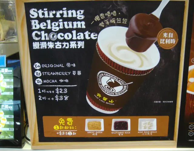 ◆◆◆◆◆◆◆◆◆◆◆◆◆◆◆◆◆◆◆◆◆◆◆◆◆◆◆◆◆◆To warm up for winter, lets play a game of spot the difference!If you have read my HLS reviews before, you will know what I am talking about.:(!◆◆◆◆◆◆◆◆◆◆◆◆◆◆◆◆◆◆◆◆◆◆◆◆◆◆◆◆◆◆The last drink I had at HLS was the chocolate fruit drink, it was extremely nice, but it depends which branch you go because I found it inconsistent.I really like the way HLS is slowly changing its image by serving almost Western drinks with some Chinese elements to it.The design of the cup is similar to the Western brands of coffee with a slight Taiwanese touch to it.It is quite interesting their recent products such as the choco fruit drink and this drink do not feature their corporate image.Anyway, I tried to order this drink when I dined there, but I didnt realise it was Takeaway only!!I felt that it killed the fun because as a Takeaway drink, the solid chocolate on the spoon was already in the cup of hot milk with the lid firmly on.It took away all the magic of visually stirring it and seeing it turn from milk into chocolate and virtually impossible whilst walking through packed streets with the lid on. But with a lid clasped firmly on, and for takeaway, it takes the fun and magic away.Anyway it totally defeats the purpose being called Stirring Belgium Chocolate.It should be served A la Carte with the spoon of solid chocolate and the drink served separately so you can have the fun of putting the chocolate into the hot milk and stirring it until it magically turns into hot chocolate, afterall their poster is conveying stirring belgium chocoate.However the magic could still be saved if they used a clear plastic cup, but the cup would be too hot to hold as a takeaway drink.The weather is not helping too, because I love sipping hot chocolate in the cold, and frankly it is still summer to me.I do not like milk but since this one had Belgian chocolate I decided to try it.It was basically a cup of hot milk with a choice of Belgian chocolate, Strawberry chocolate or Mocha.You also get a free condiment to put in the drink which is similar to the Taiwanese drinks, the choices are wheatgerm, purple rice or mini glutinous rice balls.The service at this branch was poor, the staff didn’t seem to have any knowledge of the drink or perhaps it was new and no one had ordered it yet, the staff did not ask me which chocolate I wanted or which condiment I wanted. I had to tell her I wanted the mini glutinous rice dumplings.I ordered the Belgian chocolate but when I opened the lid I saw bits of pink floating!!They gave me the wrong chocolate, but luckily I chose the glutinous rice balls because I don’t like the combination of wheat germ or purple rice and strawberry.Luckily I found a quiet spot to stir the chocolate before it melted and it turned out quite nice.However there was SYRUP in it which made it too sweet and totally ruined it, but the scent of strawberry was really nice with the chocolate and not that fake. The mini glutinous rice dumplings matched ok with chocolate and strawberry.Next time I will request it without syrup◎ⓢⓤⓟⓔⓡⓢⓤⓟⓔⓡⓖⓘⓡⓛ◎ⓢⓤⓟⓔⓡⓢⓤⓟⓔⓡⓖⓘⓡⓛ◎Price: $18-23 depends which branch you go!Service: Depends when you goYummy factor: OkSweetness levels: Chocolate is sweet, and they added syrup too!!◎ⓢⓤⓟⓔⓡⓢⓤⓟⓔⓡⓖⓘⓡⓛ◎ⓢⓤⓟⓔⓡⓢⓤⓟⓔⓡⓖⓘⓡⓛ◎…查看更多