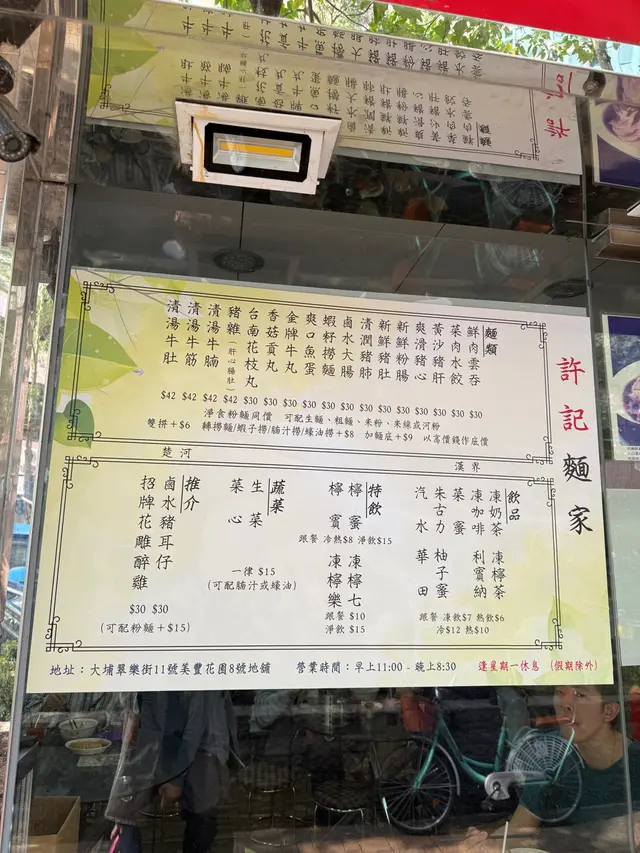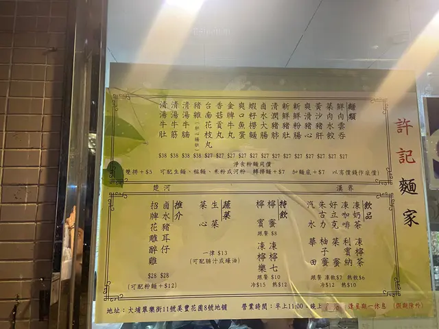 許記麵家 (大埔) 網址: https://s.openrice.com/QrbS0dWm700 地址: 香港大埔翠樂街11號美豐花園8號地舖 電話: +852 61395632