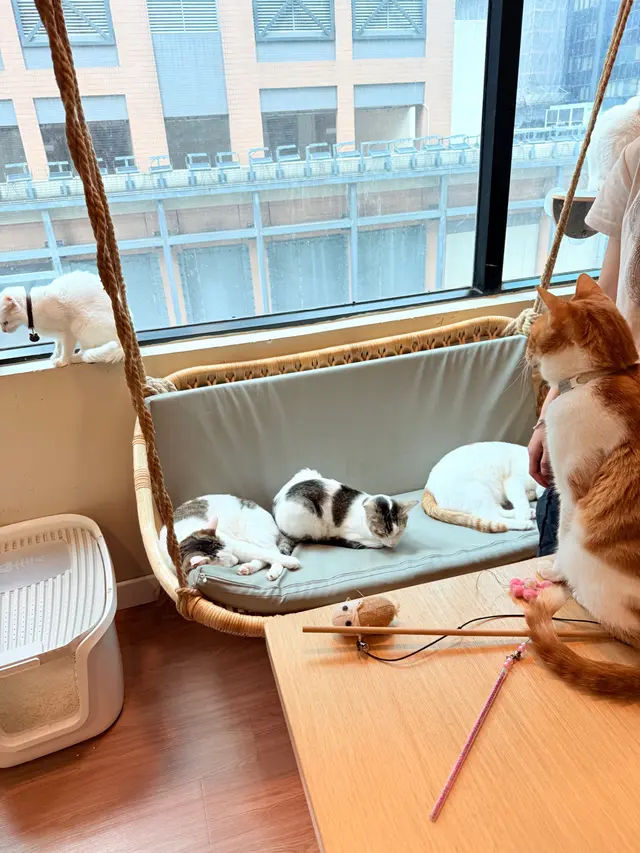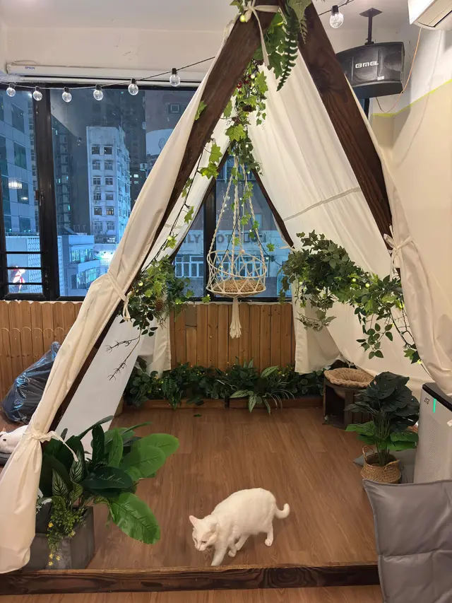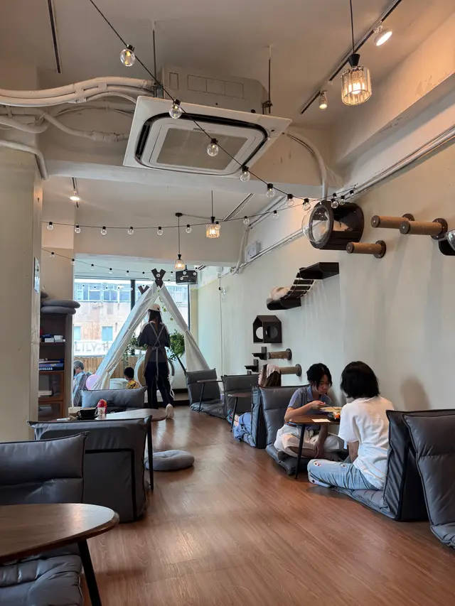一入門口就聽到「🐱 喵~」一聲,瞬間覺得自己心都融晒☺️ 呢間貓Cafe主打邊吸貓邊食飯😆 同時又有愛心元素——每月會捐出部分收益俾慈善機構幫助貓貓領養,啱晒一班愛貓又想行善嘅人👍整體環境走溫柔系,有啡色木系家具同柔和燈光✅ 最得意係佢啲矮桌設計,貓貓可以輕鬆跳上嚟膝頭,真係會令人心都溶化🥰 打卡位係一個帳幕小天地,有藤籃同綠植襯托,啱晒影相放上社交平台🤩 食物方面,我試咗佢哋嘅「喵全日早餐」——份量啱啱好,腸仔煎得香脆,炒蛋滑到好似雲咁,喵形多士絕對無得輸😎 搭配「伯爵紅茶」,微微茶香中又帶少少花味,溫柔得嚟有層次❤️ 之後仲忍唔住追加「貓貓西多士配焦糖醬」,外脆內軟、甜而不膩,焦糖味超香😋 最後用「貓啡芝士蛋糕」收尾,芝士creamy得嚟唔會heavy,配埋小貓慢慢行過嘅畫面,療癒度爆燈🌟 同場仲有得買貓零食俾貓貓,吸貓時間保證唔會空手而回😎 如果你想搵個地方放鬆一下、被貓包圍住食個靚brunch,呢間貓啡真係一個唔錯嘅選擇。帶定相機,準備俾貓貓偷鏡啦~🐾☕💛…查看更多