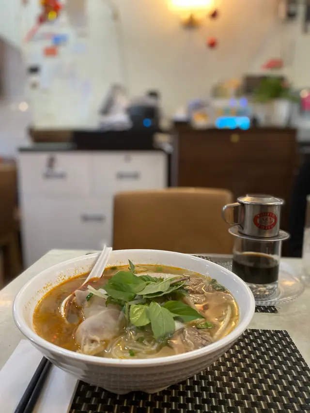 中環地道越南風味 hoholly等級42021-02-11750 瀏覽 關注 位於中環PMQ附近嘅呢間💛💛越南屋雖然係斜路上面,舖頭細細但lunch time都吸引咗唔少人,都幾full。呢度主打唔同款式既湯粉,裝修格局真係幾似地道越南餐廳,枱面上都有啲酸辣醬同魚露。順化湯檬位於越北既順化係古時越南皇帝住嘅地方,所以做嘅菜式都會精緻啲,配料又會豐富啲,呢款順化湯檬就真係估佢唔到又咁多唔同配料,包括牛腩片、牛展同豬腳,仲有檸檬葉、芽菜同洋蔥增加風味。湯底加咗少少辣油令到味道帶微辣,不過除咗普通既鹹味同微辣就食唔出其他味,牛腩都幾淋,不過就無乜特別,整體較一般😅。越式滴漏咖啡越南出名滴漏咖啡,之前去越南既時候都試過真係幾特別,而家冇得去旅行就試下呢度既滴漏咖啡回憶一下🥰可以揀熱或凍,可以睇住啲咖啡係個filter度滴落嚟,望落都幾正宗,可以要求自己加煉奶控制甜度,我就無落度,飲落都唔會太苦,一入口甘甘地,有越南咖啡獨有既香味,即刻搵返晒去越南玩既回憶😻人均消費:$70推介指數(10分為滿分):6分…查看更多以上食評乃用戶個人意見 , 並不代表OpenRice之觀點。讚好分享中環地道越南風味 越南屋 https://s.openrice.com/QrbT02lyTW0檢舉 張貼 評分3味道3環境3服務3衛生3抵食用餐日期2021-02-09用餐途徑堂食人均消費$70 (午餐)