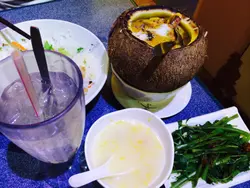 深夜來到深水埗,原來還有很多深宵食肆仍在營業。隨便選了一間,填飽一下餓了很久的肚子。內在環境不算大,而且位與位之間非常擠逼。點餐是以自助形式,所有食物的價格都異常便宜。越南餐內的日式煎茶。南乳雞扒餐 - 有小食,主菜,甜品,還有飲品,非常豐富。雞扒煎得太久,乾身而且偏硬,南乳汁只是後加上去的。蒸粉包的粉皮太厚,上枱的時候已經不熱,又乾又硬。糖水可以說我買包裝即食糖水的味道也比這個好。珍珠奶茶的味道還好,不過偏淡,沒有茶味。後面的草莓多多真是淺嘗一啖便足矣,酸!還有藥水味。這個炸得好像異形的物體就是吉列炸蠔。超級厚的炸醬,很硬很硬很硬,咬下去都很費功夫。比較好的是炸魷魚圈,外層香脆,魷魚圈彈牙。麻辣雞腎就是白灼雞腎加辣椒醬。不得不佩服廚師的刀工,把扎肉切得如此薄,完全失去扎肉的口感。這間的食物多數都是不熱的,有些是微熱,大概早就做好。這樣的價格不應有所期待,但試完這一次就足夠,沒有下次了。…查看更多