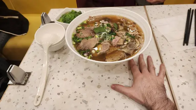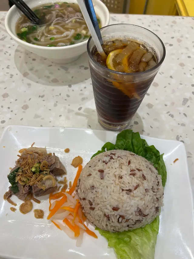星期日喺荷里活廣場,周圍都好多人,見呢一間唔算多人即刻有位,就入去食下午茶。原本覺得佢個價錢都OK抵食$46 份,但係一嚟到真係有驚嚇到,牛腩飯得四粒牛腩,係四粒。飯就好多,一大碗。以為朋友食生牛肉河粉會好啲,點知都係得兩片牛肉,係兩片,一樣河粉係有一碗的。如果佢覺得啲肉貴,起碼俾多少少配菜,俾人送飯,佢係連配菜都冇嘜㗎。職員態度就正正常常,啲枱枱凳凳都乾淨。如果要調味料就要自己行去拎,職員唔會招呼你。如果真係周圍冇位想入嚟呢度食,唔知會唔會叫豬扒會好啲,估計豬扒應該有一塊…..啩!唔肯定。