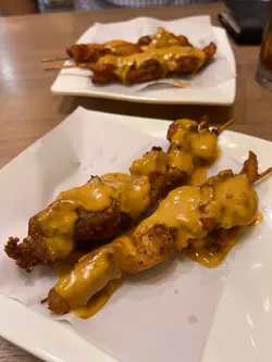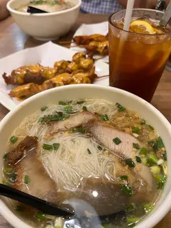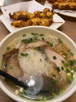 下午餐 冬阴功牛肉米线 热奶茶 鸡肉串
