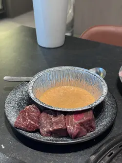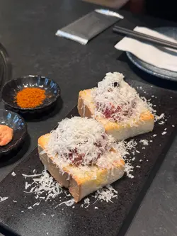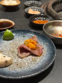呢間餐廳被網路評選台北燒肉第1名🇹🇼香港為首間海外分店,秉承本店理念,主打人手現切日本A5和牛燒肉🐂🐮和牛衝擊8道菜套餐($820/ 位)💗極生牛肉佐帕瑪森起司底層係外脆內軟嘅蒜香厚多士,鋪上厚厚一層生牛肉他他,再刨上鹹香濃郁嘅巴馬臣芝士,最後以魚子醬點綴,味道好豐富🍞💗美國牛舌厚切厚切牛舌表面燒得焦香,入面保持脆嫩彈牙,最適合配搭自家鹽葱油或青檸汁👅💗日本A5和牛牛小排薄切和牛牛小排油花分佈平均,肉質軟嫩細膩,入口即溶,建議配搭鹽昆布或油封大蒜🧄💗日本A5和牛刺身選用和牛三角做成薄切刺身,帶豐富霜降油脂紋,配上獨家日式醬油同Wasabi,清新得嚟又有油脂香🥓💗日本A5和牛月見金磚將A5 和牛肉眼切成小磚頭,呈大理石油花紋理,一咬落去滿滿油脂同肉汁係口中噴發,蘸上生蛋黃同燒肉汁,口感更絲滑🥚由於油脂含量多,建議加埋白飯同意大利黑松露醬一齊食,中和油膩感外,更增添一份松露香🖤💗日本A5和牛海膽卷火炙和牛三角口感滑嫩,油脂豐潤,結合鮮甜嘅海膽,海陸滋味係口中互相交錯🧡💗日本A5和牛夏多布里昂和牛夏多布里昂屬於牛柳最嫩嘅位置,脂花紋路幼細,肉質最軟熟嫩滑,肉味濃郁且油香四溢,最適合配搭柚子燒肉醬,除咗提升肉嘅鮮味,柚子嘅清香可以中和油膩感🥩💗醬漬封門柳選用美國封門柳,用上自家醬油醃漬,肉質柔軟帶嚼勁,牛味濃郁之餘滲透醬油嘅香味🐃💗時令蔬菜籃日本山藥爽甜黏滑,意想不到同明太子美奶滋非常夾;翠用瓜爽脆清甜,配上特製辣椒粉增添風味;醬油牛油雜菌有齊雞髀菇、秀珍菇同金針菇,非常索汁🥙💗真理丼(+$150)真理丼集齊和牛他他嘅油香、海膽嘅鮮甜、魚子醬嘅鹹鮮、黑松露嘅香味、蛋黃嘅creamy,連同白飯撈埋一齊食,味道層次豐富🍚💗今歸仁西瓜意式手工雪糕 ($62)西瓜雪芭冰感清爽,啱晒食完燒肉後清下味蕾🍉💗菠蘿桶柑意式手工雪糕 ($62)菠蘿雪芭微酸清新,特別加咗柑橘肉係裡面,完全消除哂油膩感🍍💗紅提蜂蜜酒 (+$68)選用純正香港本地蜂蜜發酵,並加入紅提子乾釀製而成,入口帶葡萄香甜,散發出淡淡蜂蜜味,非常易入口🍇…查看更多