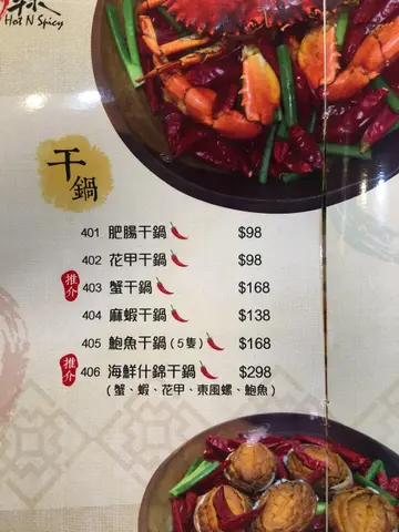 自選干鍋.辣一辣田雞,香辣孜然雞,水煮牛肉,正宗口水雞