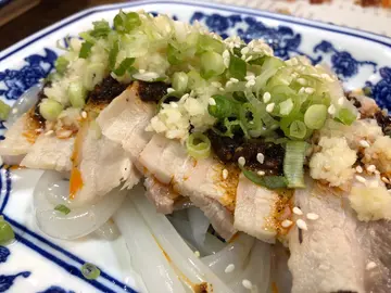 回鍋肉香到喊,仲好惹味,只係有樣唔好,就係有少量碎骨醬燒茄子,一定好食過嗰幾間上海XX見啲小炒好有水準,所以追加多一個蒜泥白肉白肉下面係粉皮,呢個辣醬出色到不得了,完全有我食川菜嘅感覺同味道,連唔食辣嘅爸媽都清左呢碟嘢