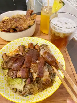 一直都好想去試呢間台式小店次次經過都大排長龍終於去左試啦店內空間小座位有限而且人手都有限落左單之後都要等一段先上菜諗住試最人氣嘅雞髀便當 點知冇賣唯有試下雞髀個朋友豬髀啦便當會附送每日都唔同嘅配菜四款而當日就係粉絲 滷豆乾 甜不辣 椰菜便當仲包埋飲品冇咗最想食嘅雞髀失望左但滷豬髀令我嘅心情由谷底升返上嚟豬髀滷得非常入味 充滿醬油香每一塊肉同脂肪嘅比例一半半唔會食到覺得好油膩肉質好腍身軟滑 好好食!配菜方面亦都好出色每款都好入味最欣賞係甜不辣個便當太多餸菜食完真係好滿足查看更多