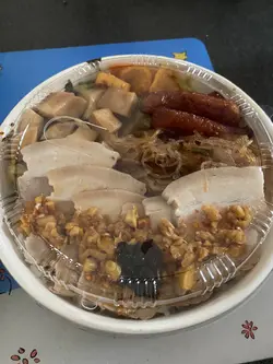 黃店好吃🤣 不過好細間超級逼相都好難影 亦都排好長龍 好彩早到一步6.30到唔洗排等一等就有位 食食下望出去已經見到好多人 食完出去條龍長到嚇親人!🤣我食鹽酥雞好好食,雞既炸皮厚度敵中,酥脆唔會硬,雞肉又juicy,仲超熱一定係新鮮炸起。加左鹵肉,覺得味道偏甜。另有每日唔同既5種配菜,味道都好食。見到隔離既鹵香好似仲好食,係炸既再撈左鹵汁咁。但男友叫既紅燒牛肉就唔得了,唔好叫,好硬又乾🤫🤫 另外叫左雞腿卷同台灣腸同甜不辣,全部都係炸的,味道不錯,由其雞腿卷,但超熱氣🤣飲品跟餐叫都抵,好飲的但無乜特別。總結,抵食又好味又好黃 不錯 但真係坐得好辛苦🤣查看更多