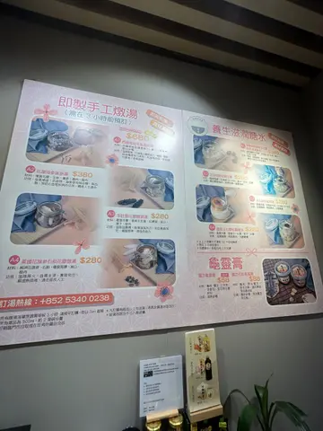 平時好鍾意飲湯但翻工無時間煲老火湯係時候要補一補身今次搵到間即製手工燉湯糖水亦係即叫即燉絕無添加劑 訂左幾款試🔸滋陰清熱養顏花膠烏雞湯 $68/500ml碗湯好足料!個湯好清甜,用咗竹絲雞同花膠一齊煲,雞肉質鮮嫩,花膠都好嫩滑,兩者相輔相成,味道更加突出。仲有印度椰子、紅棗煲,紅棗令湯汁甜而不膩。呢個湯有滋補功效,真係值得推介!🔸紐西蘭花膠牛奶美顏糖水 $88用咗紐西蘭花膠、北海道3.6牛奶、蓮子、百合、紅棗煮成。呢款係燉奶嘅質感,超滑溜,絕對係滋陰養顏嘅糖水!🔸養顏潤肺杏仁露 $38杏仁露口感好滑順,唔會有任何顆粒嘅感覺。杏仁味濃,而且仲有淡淡嘅甜味,凍食好消暑解渴。🔸靈芝石斛龜靈膏 $88龜靈膏口感順滑,藥材味唔會太濃烈,而且都唔會太甜,可以滋陰補虛,幫助身體調理,對於長期熬夜、工作壓力大嘅人士,食呢款龜靈膏可以幫助身體恢復元氣。