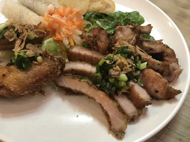 串燒串燒也烤得剛剛好越式蒸粉包越式蒸粉包就比較淋身,略嫌包得唔夠實,咬下的時候要小心,不然會好易散開搞到好狼狽:(:(:(熟牛肉湯河水晶覺得朋友點的熟牛肉湯河的熟牛肉有點稍稍煮太熟了,但我們其餘點的扎肉雞絲燻蹄撈檬跟咖啡牛腩飯也很值得推薦😋😋😋扎肉雞絲撈檬水晶點的扎肉雞絲撈檬份量很足夠,加入了扎肉、雞肉和燻蹄,當晚飯份量都夠哂
