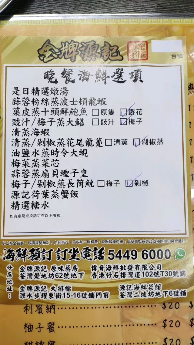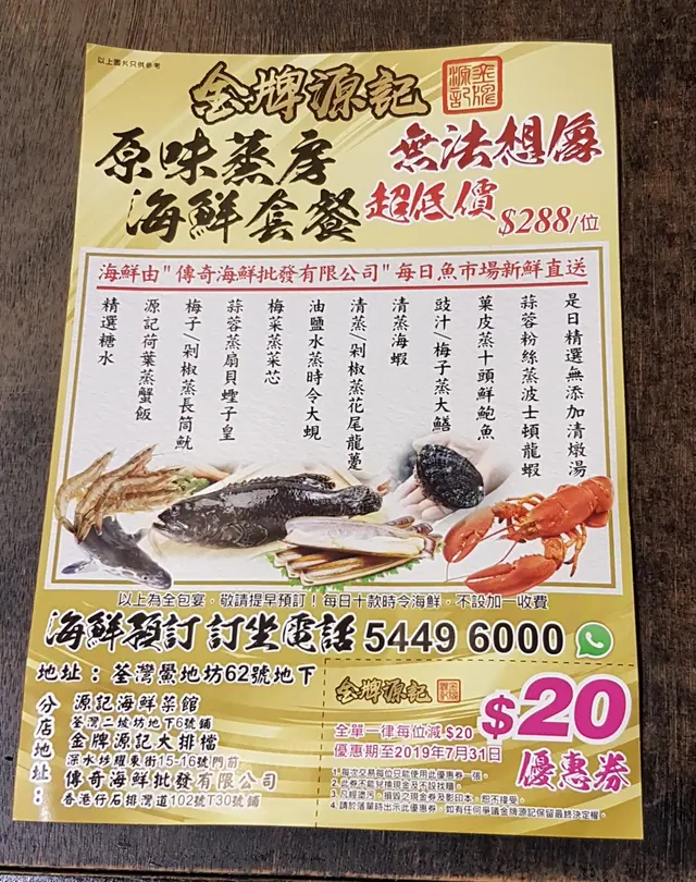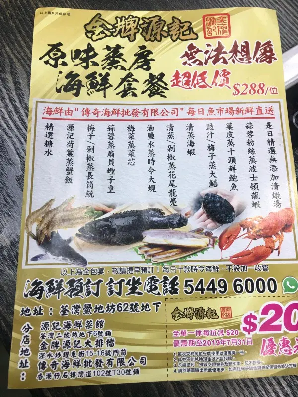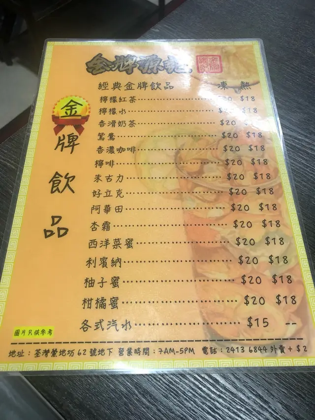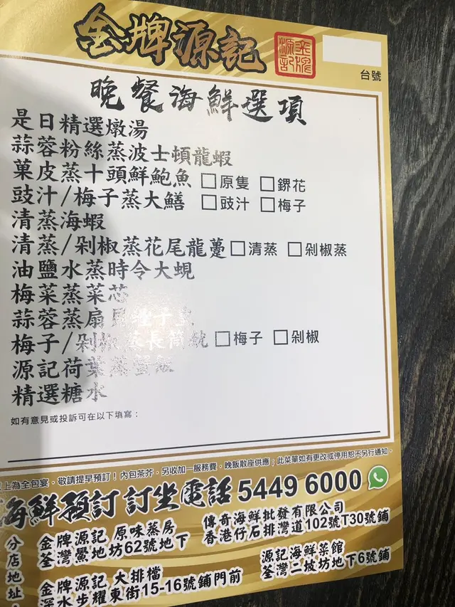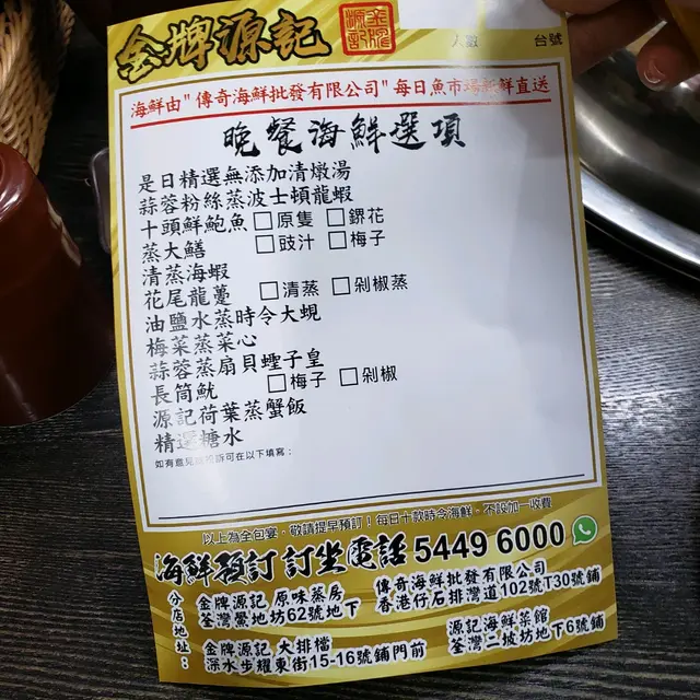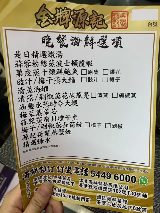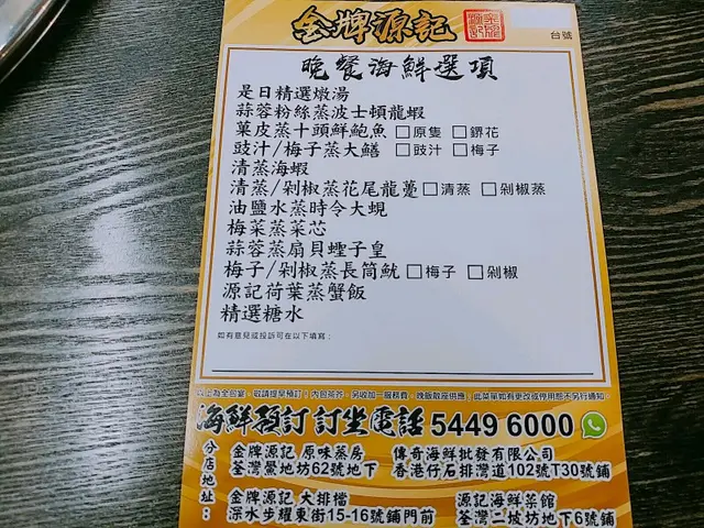 金牌源記 (荃灣) 網址: https://s.openrice.com/QrbS0UeK900 地址: 香港荃灣鱟地坊62號地舖 電話: +852 24136844