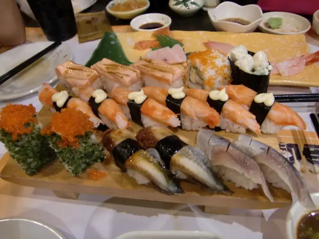 呢度既食物種類有好多呀! 有刺身, 壽司, 燒物, 炸物等. 我覺得值得推介既係牛柳粒同芝士焗蠔. 前者好香口同有肉汁, 而後者既芝士唔”漏”同d蠔都幾大隻.但今晚最可惜既係因為火山灰, 運唔到d三文魚黎, 搞到冇得食……