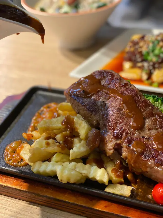 Lunch time 超具人氣!🥰無論上班族定附近住戶,親民飯堂好食又高質。 $80芝士鮮茄焗牛舌飯,人氣牛舌必試!三大片,好厚身超足料!🤤飯/意粉,炒飯底有誠意,加上蛋碎好香。加配餐湯🍅羅宋湯,🥬有椰菜同番茄酸甜惹味。口味更可選少汁/多汁,可以根據個人喜好悉心調整。最近想食得健康少少,所以少汁最適合我,🍚配上番茄醬,撈飯好好味。 $126 鐵板西冷牛扒,🥩牛扒大件有份量,薯菜薯條香口,汁底:黑椒汁味道濃郁。餐湯:是日老火湯,親切解渴。🥦加配:冰鎮芥蘭,日本芥辣大條香脆,好新鮮。口味:7成熟,汁另上。查看更多