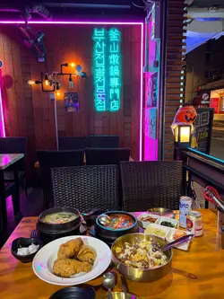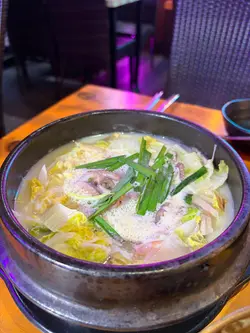 呢排我又重投韓劇嘅懷抱每次睇到佢地聚餐食嘅野都好吸引今日約埋同樣愛吃韓食嘅朋友仔一齊試下呢間韓國餐廳餐廳空間都幾大, 入面有好多座位, 門口有兩隻青蛙歡迎我哋我地去嘅時候係放工時間, 陸續都有客人入嚟, 大部份都係後生仔女, 餐廳播住韓國流行曲, 少少昏暗嘅燈光好有feel入座入由OPPA端上韓式前菜六小碟有d前菜都不是常見, 例如:薯仔條, 醃牛蒡, 黑豆等, 前菜係可以refill的在場大部份侍應都是OPPA, 要說英語的,不過如果真係有困難, 佢地有位女生係識講廣東話, 同埋落單係用QR Code, 所以應該沒難度點咗佢地嘅新menu: 辣粉年榚橙黃色的是芝士粉和韓式辣醬, 仲有好多材料年榚當然少不得, 金菇、魚榚、腸仔、洋蔥、大蒜和蔬菜, 份量都幾驚人會由Oppa 幫手煮(食韓餐的快感)將韓式辣醬和芝士粉都融入整個鍋後,就可以食得啦我哋兩位女生,食咗好耐都仲有好多料,好似食極唔完咁有芝士味嘅辣湯,好惹味年榚煙韌軟糯,係腸仔淋身少少另外朋友見到隔離檯點咗呢個:韓式芝士吉列豬扒,佢都好想試喎因為見到有拉絲嘅芝士,又係好吸引嘅Btw,如果覺得湯底太辣,可以加清湯中和返你睇下….真係好誇張芝士由入面都爆出嚟四大件外皮脆卜卜,配埋側邊嘅粟米芝士,好似去咗食韓燒咁埋單嘅時候,侍應話佢哋做緊個社交平台活動只要即場follow 佢地社交平台, 就可以揀個愛情鎖,仲可以即時寫上願望並將鎖扣起店內嘅「釜山橋」上我都要搵返啲青春回憶先🫶🏻呢度幾適合一大班朋友和情侶嚟聚餐份量大又可以「許願」…查看更多