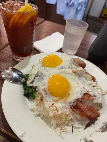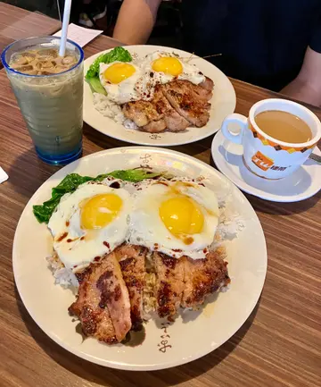 嚟到客滿個個都係食豬扒煎蛋飯,飲凍檸茶或者奶茶。我今次就試咗雞扒豬扒煎蛋飯!估唔到地飯底好食豉油都好正!加埋佢塊煎豬扒真係超好食,反而雞扒有啲失色,只有一陣香料味。試埋佢個茶走真係冇得輸。不過我呢度咁樣加埋嘢飲都差唔多$80,作為午市有啲貴