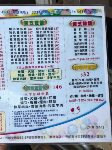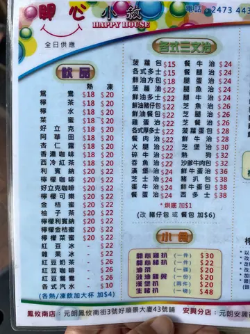開心小敘 (元朗) 網址: https://s.openrice.com/QrbS0bxa000 地址: 香港元朗鳳攸南街3號好順景大廈1座地下43號舖 電話: +852 24734433